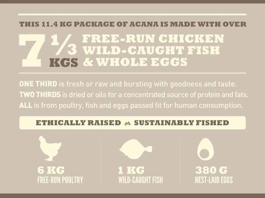 Confectionné dans nos cuisines primées à partir des ingrédients les meilleurs et les plus frais au Canada, ACANA, une nourriture adaptée aux Biologically Appropriate™ des animaux de compagnie, est le meilleur moyen de garder votre chien heureux, sain et fort.