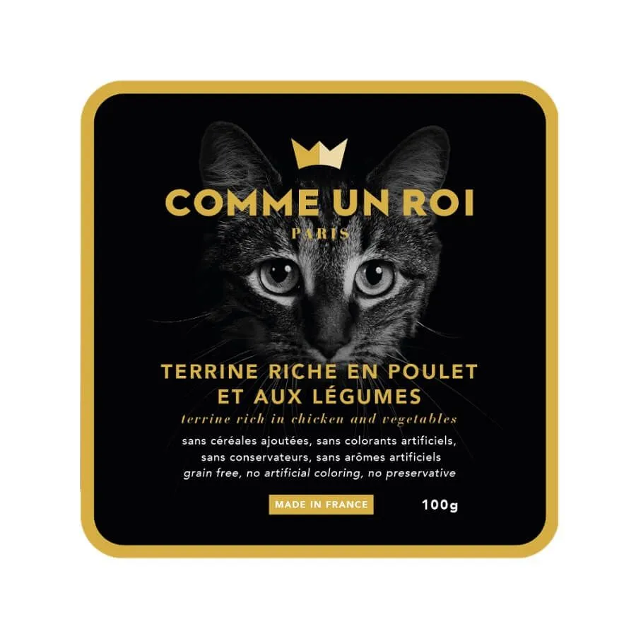 Les terrines pour chat sans céréales de Comme Un Roi seront le nouveau coup de coeur de votre chat. Cette alimentation humide naturelle, sans céréales répondra aux besoins nutritionnels de votre félin grâce à sa recette composée de produits de hautes qualités et à l’ajout de minéraux, vitamines et taurine.