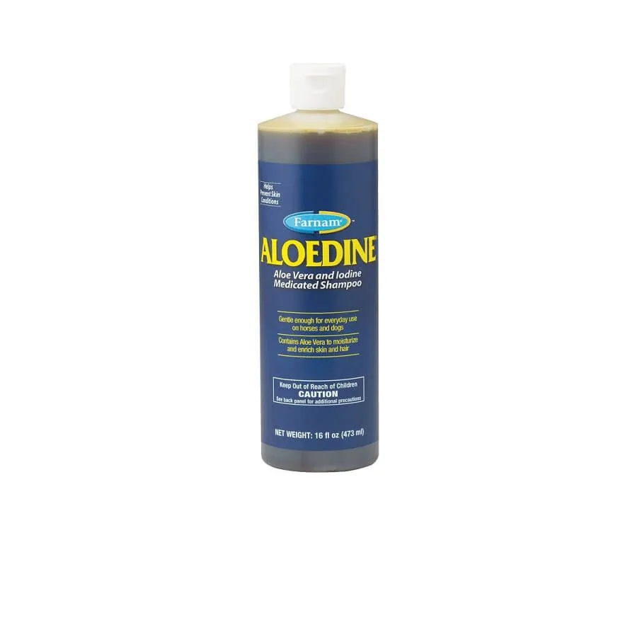 Le shampooing Aloédine de Farnam est idéal pour nettoyer et désinfecter en profondeur la peau sensible de votre cheval. L’associtation d’iode est d’Aloé Vera contenu dans ce shampooing aide à prévenir des affections cutanés qui peuvent survenir et se propager sur la peau de votre cheval. Aloédine limite l’appartition de champignons et désinfecte la robe de votre animal, sa mousse riche nettoie efficacement le pelage et le rend brillant. L’Aloé Vera présent dans ce shampooing aura une véritable action nourrisante et hydratante pour la peau de votre compagnon.
