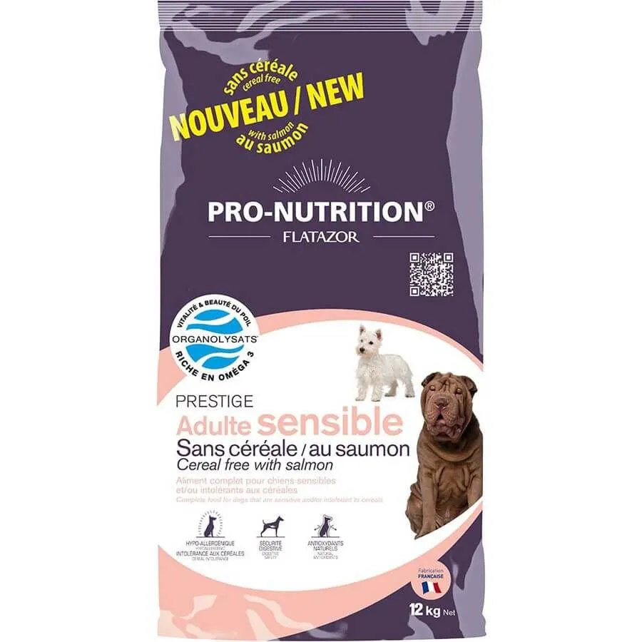 Les croquettes Flatazor Prestige Adulte Sensible sans céréales au saumon sont idéales pour les chiens ayant une sensibilité et/ou une intolérance aux céréales.