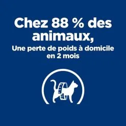 Même lorsque votre animal a terminé sa perte de poids et atteint son poids idéal, il est important de continuer de donner les aliments pour chats Prescription Diet Metabolic. Des contrôles réguliers chez votre vétérinaire sont essentiels pour s’assurer que votre chat reste en bonne santé.