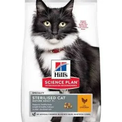 Hill’s Science Plan Feline Mature Adult 7+ Sterilised est une alimentation complète pour les chats stérilisés âgés de 7 ans et +, pour le maintien du poids et à la bonne santé urinaire. La formule contient des ingrédients faciles à digérer, des protéines de haute qualité et des oméga-3 et 6 pour garder un système immunitaire fort.