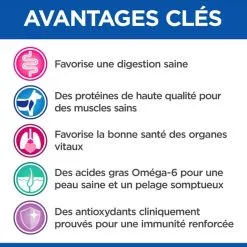 - Avec des acides gras oméga-6 pour une peau saine et un pelage somptueux