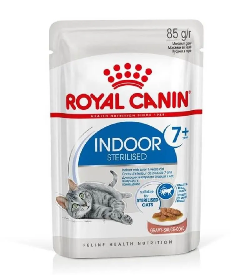 Royal Canin Feline Health Nutrition Indoor 7+ en sauce constitue une alimentation spécialement conçue pour la nutrition des chats stérilisés d’intérieur âgés de plus de 7 ans.