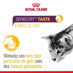 - ROYAL CANIN Sensory Taste a été élaboré spécifiquement à partir de saveurs sélectionnées pour stimuler le sens particulier du goût de votre chat.