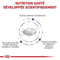 Ces croquettes contiennent des acides gras EPA & DHA, des fibres solubles et insolubles, de la taurine mais aussi des vitamines C & E.