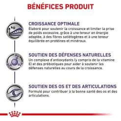 Les croquettes favorisent ainsi le contrôle du poids (teneur en calories réduite) et assurent une bonne croissance aux jeunes chiens.